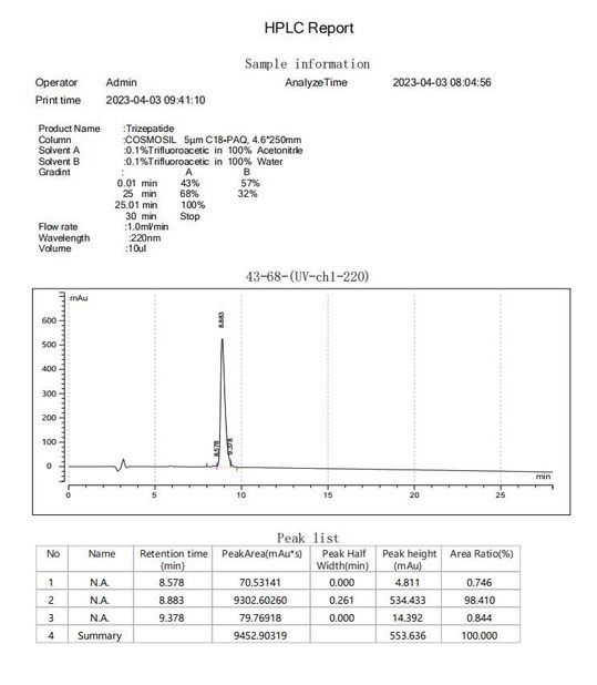 Estándar:HPLC Número:004 Ámbito de aplicación / Cocina:Tirzepatide HPLC |
