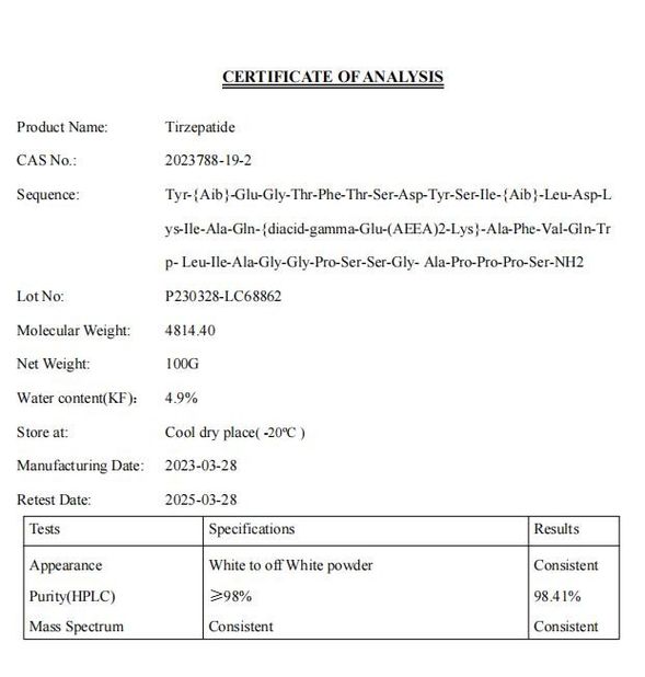 Estándar:COA Número:005 Ámbito de aplicación / Cocina:Tirzepatide |
